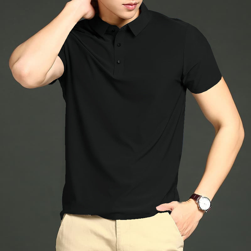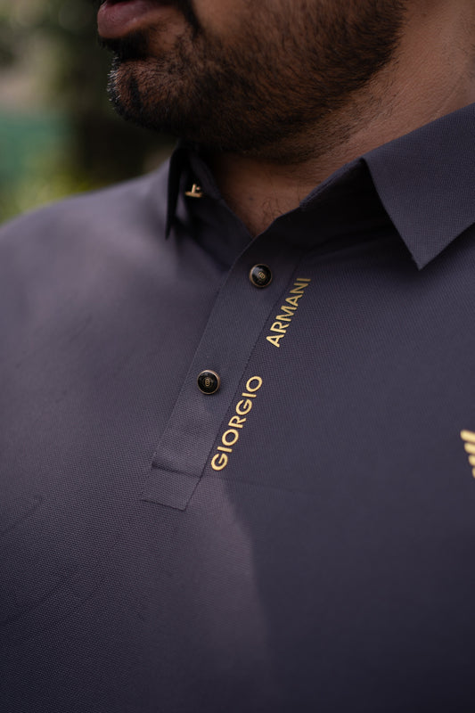ITALIAN Textured Stitch-less POLO Shirt LVPS CHARCOAL GRAY