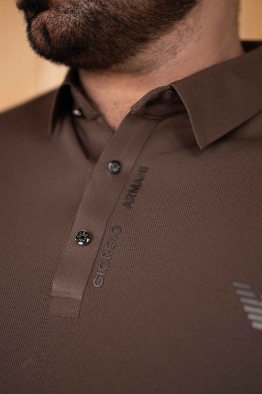 Italian textured seam less Polo Shirts OXT # 04 Brown