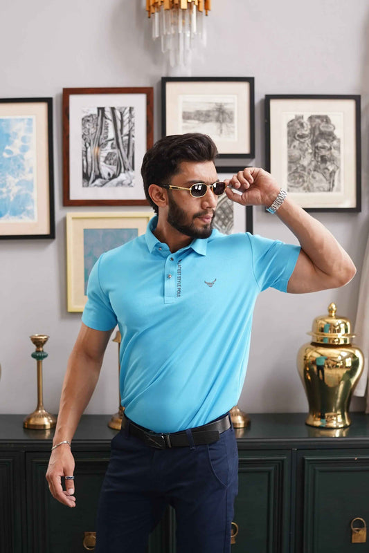 Italian textured seam less Polo Shirts OXT # 12 Sky