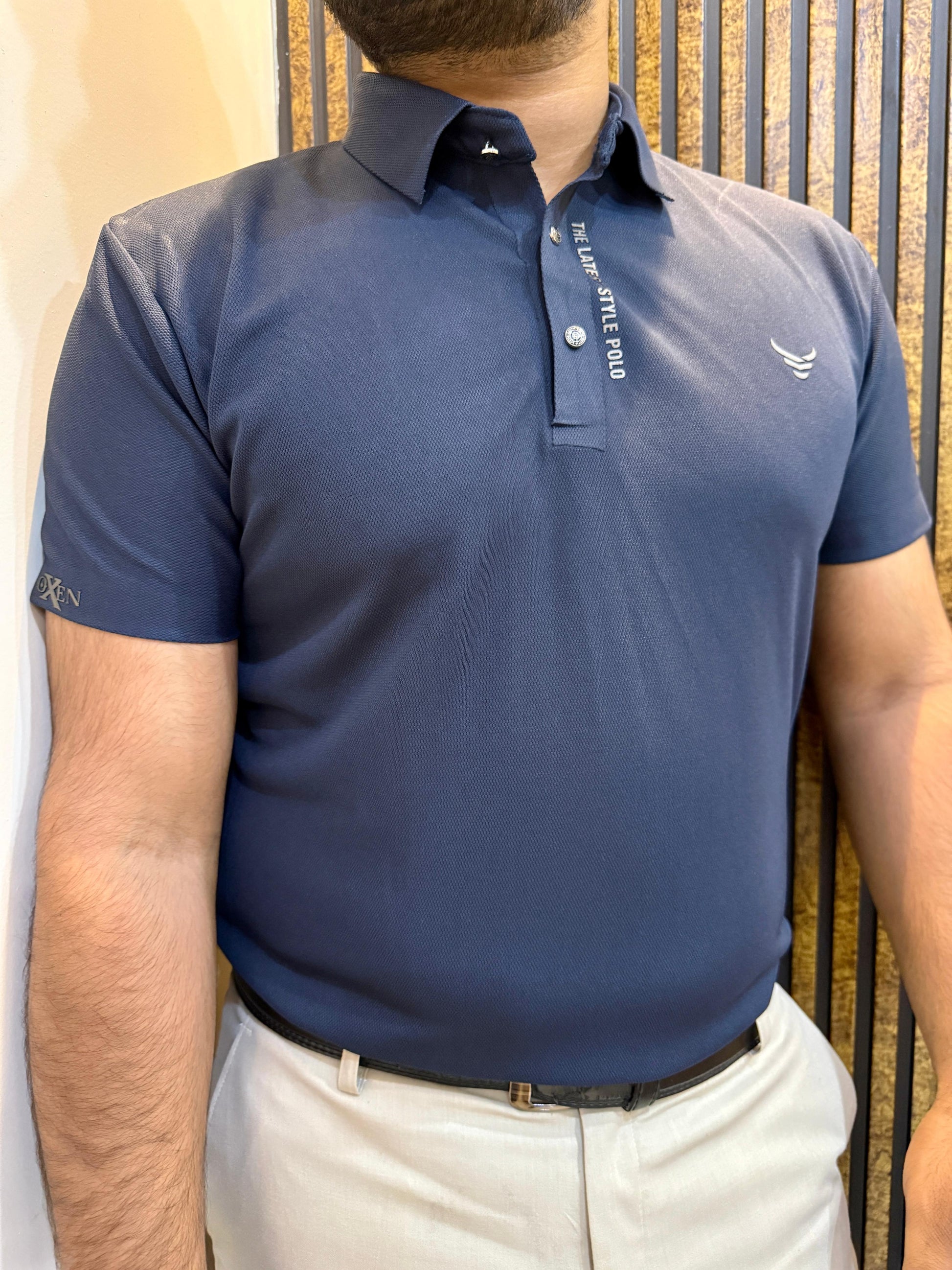 Italian textured seam less Polo Shirts OXT # 06 Navy Blue