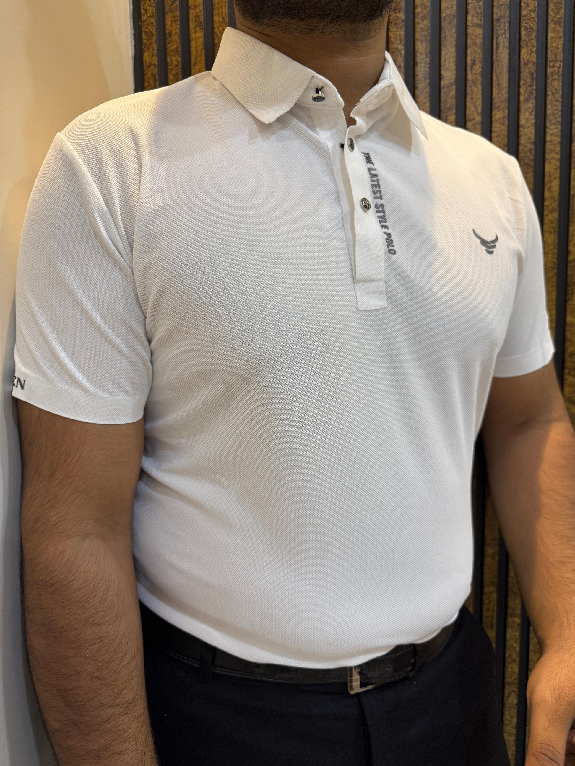 Italian textured seam less Polo Shirts OXT # 08 White