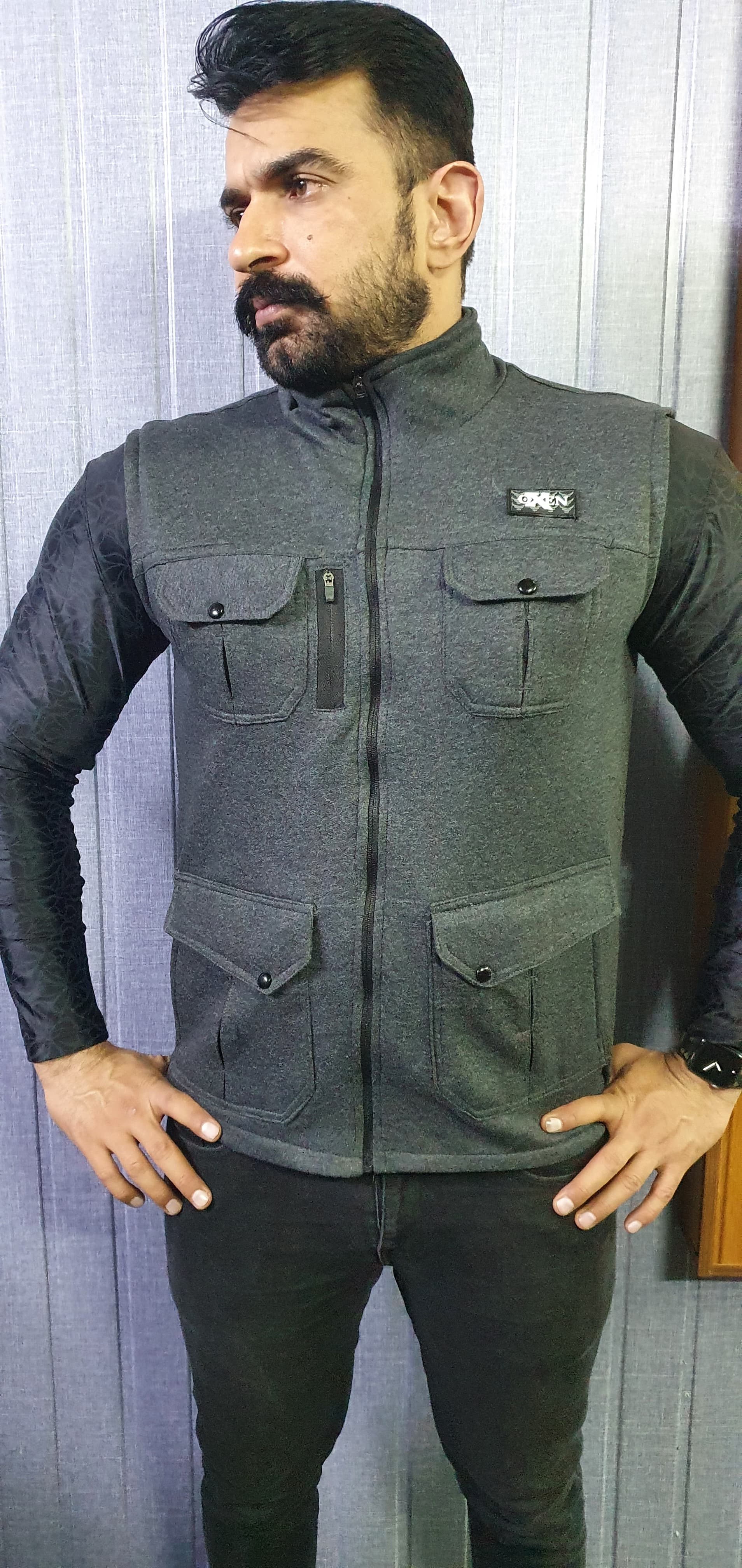 Premium Cotton Fleece Four Pocket sleeveless Jacket Melanesia Grey 14