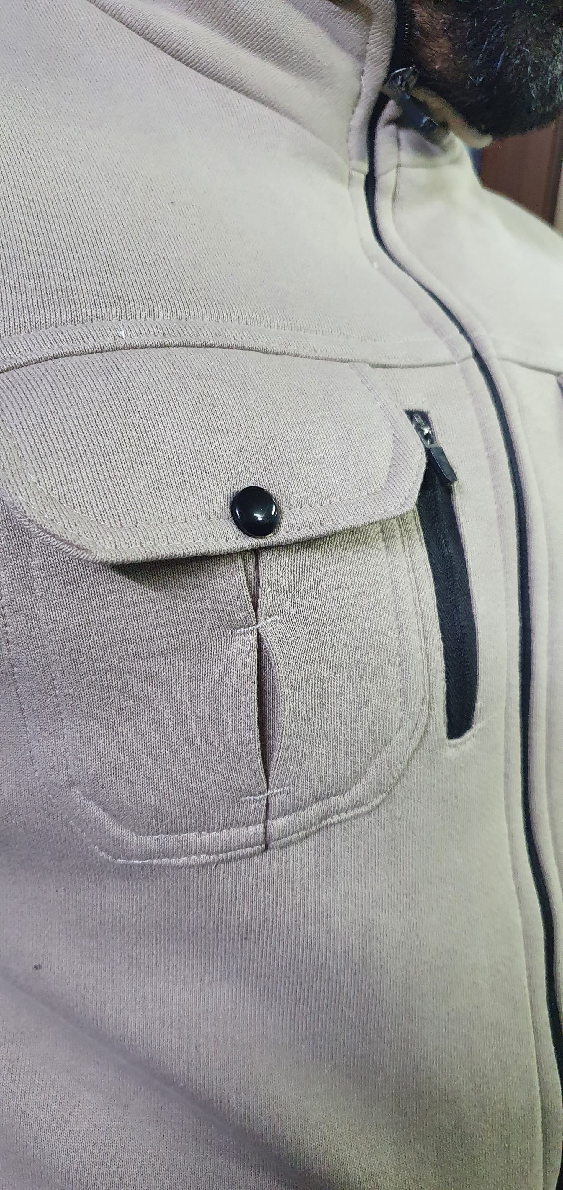 Premium Cotton Fleece Four Pocket sleeveless Jacket Beige  12