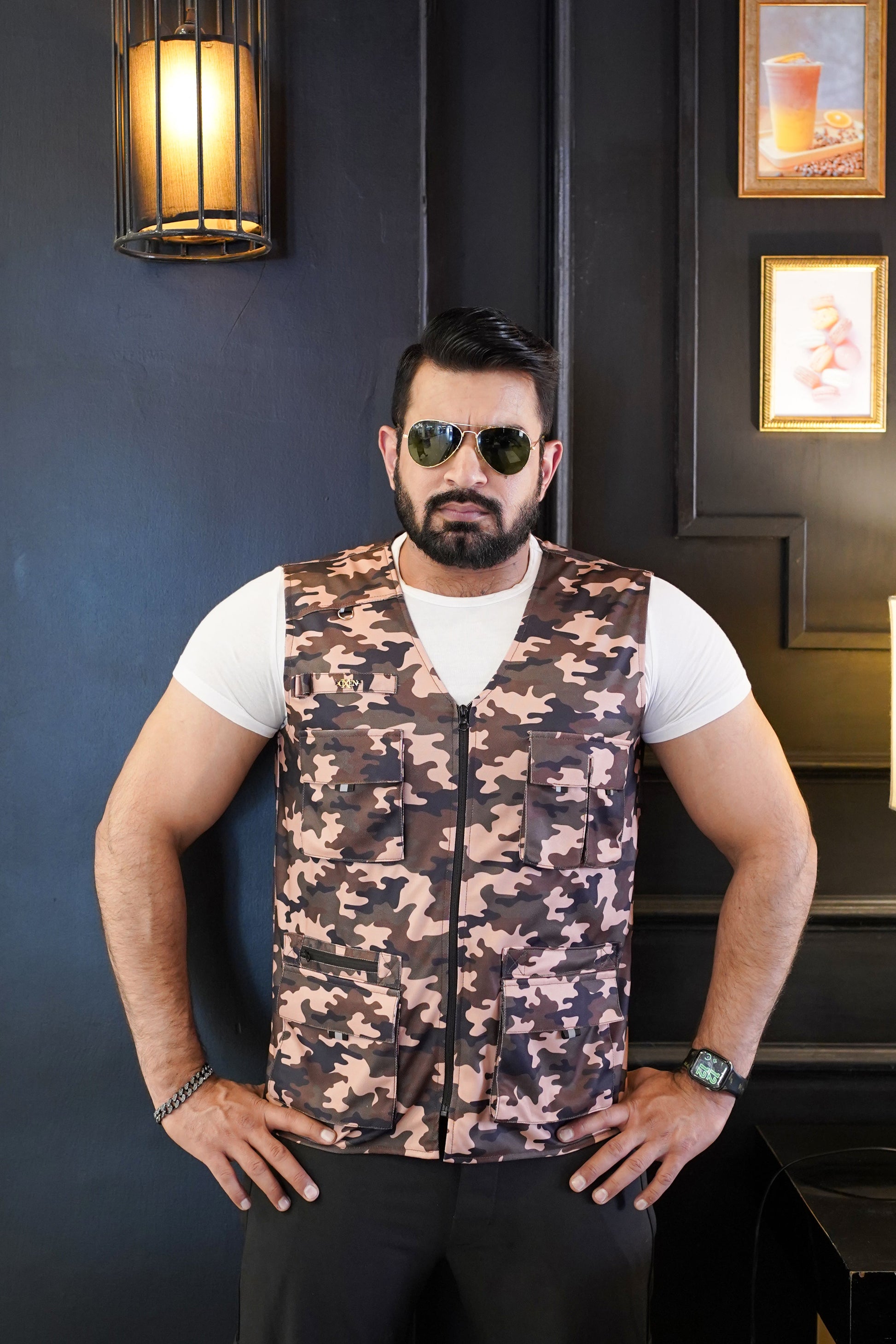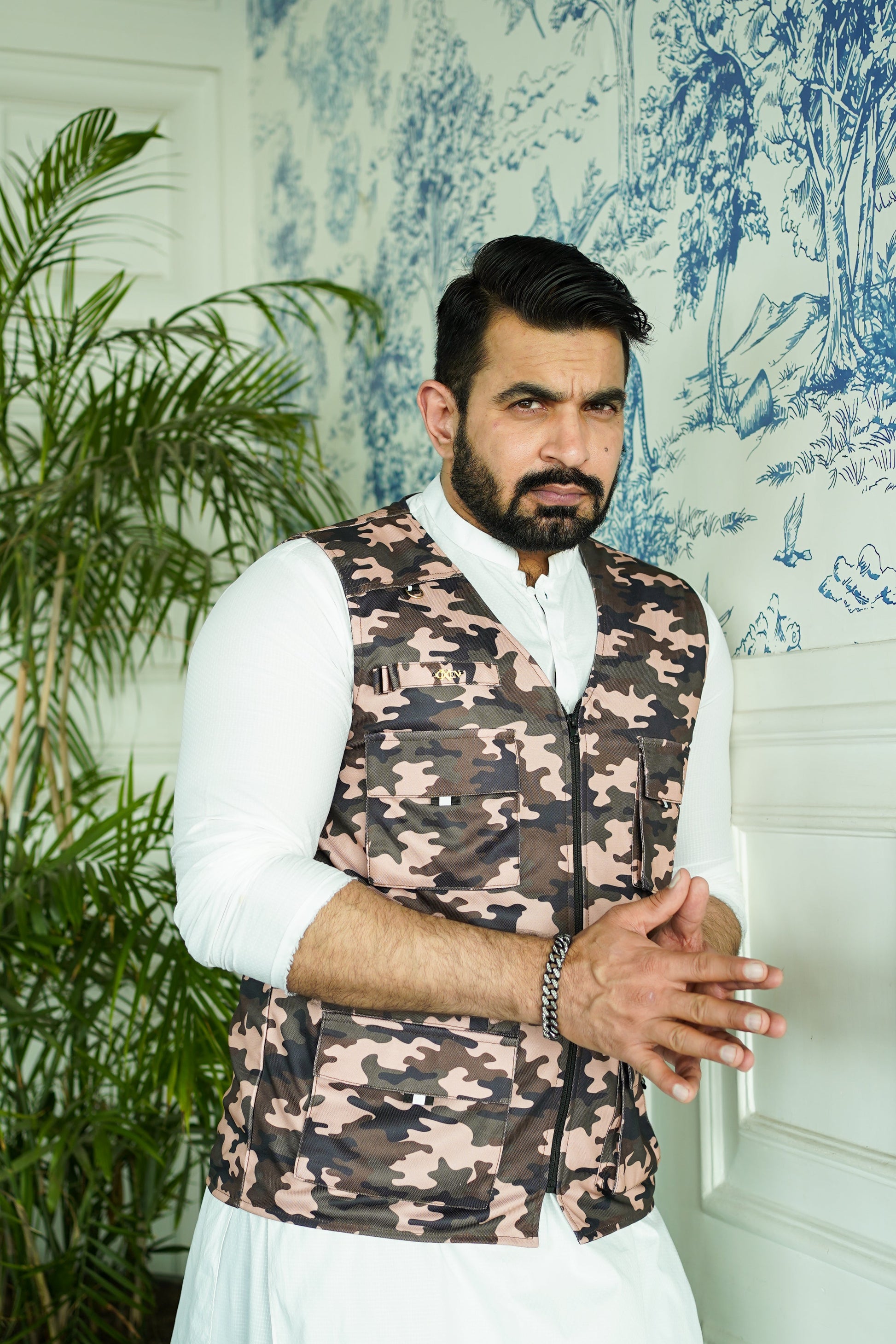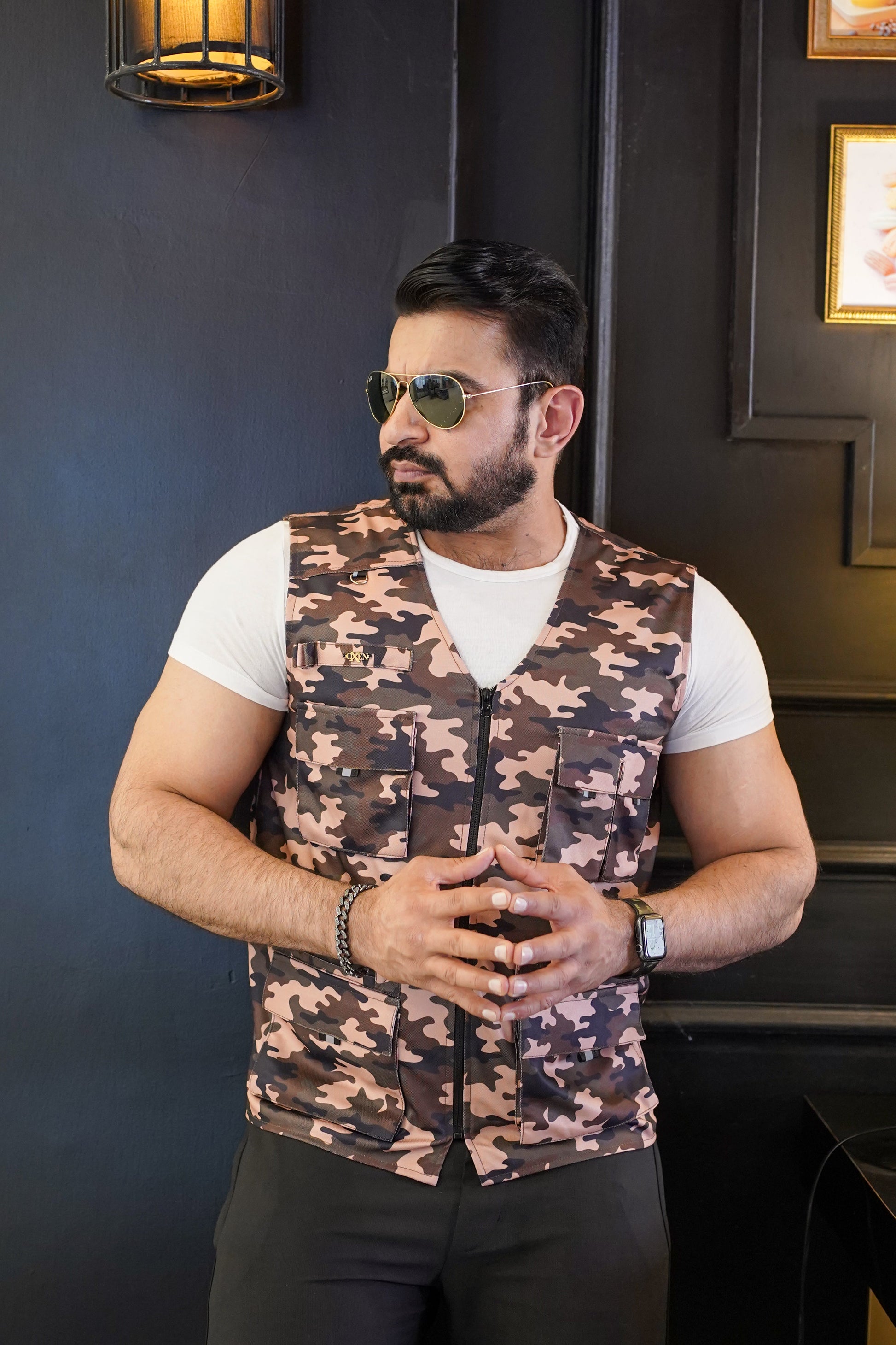 Premium Italian Textured fabrics Brown Camouflage  Sidu Four Pocket Jacket SDJkt-22